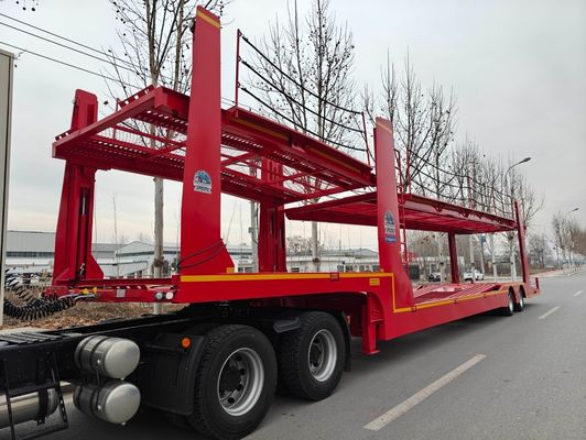 O reboque de transporte de automóveis, também chamado semi-reboque de transporte de automóveis, refere-se a um veículo utilizado para transportar automóveis,que pode ser personalizado em comprimento de acordo com as demandas do cliente,com o quadro a ser soldadoO chassi superior pode ser dividido em duas ou três partes e pode ser ajustado em altura através de um elevador e cilindro hidráulico.O painel frontal do tipo fechado é revestido com pequenas placas onduladas estampadasO veículo é equipado com uma caixa de ferramentas, um porta pneus sobressalentes, um porta-choques, um porta-choques e um porta-choques.e um sistema de travagem por gotejamento para melhorar a segurança do transporte de veículos.