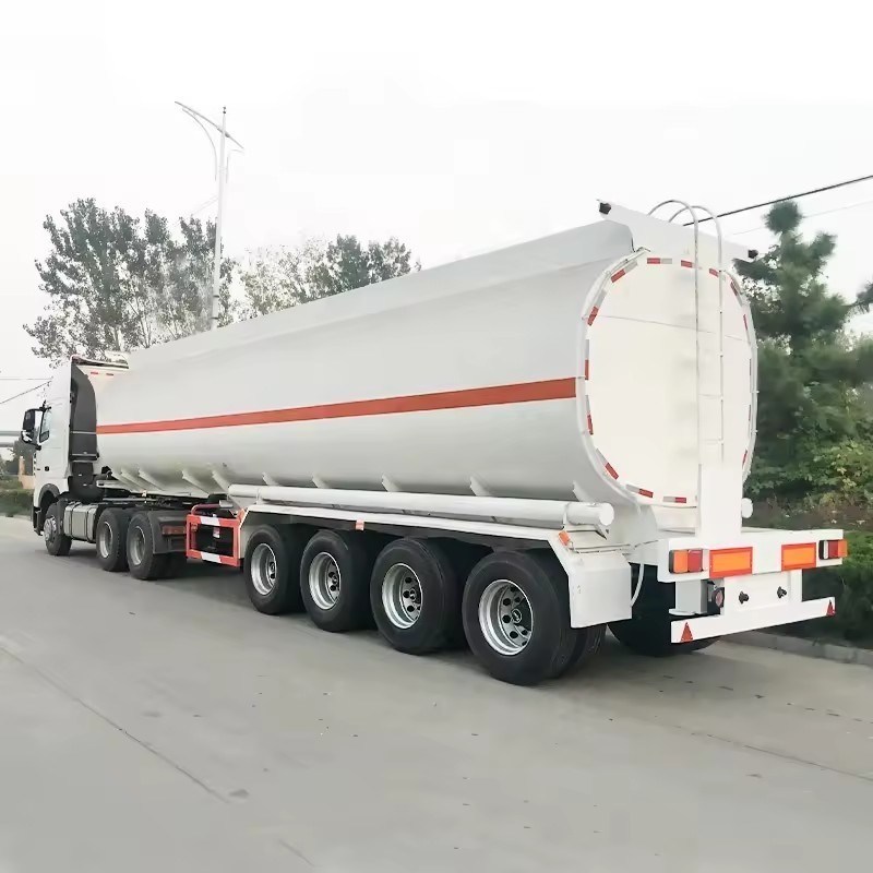 O corpo do tanque de um reboque de tanque de combustível pode ser feito de diferentes materiais, como alumínio, aço carbono e aço inoxidável.e a extremidade inferior da placa de defleção é projetada com buracos para reduzir o impacto do combustível no tanque e melhorar a resistência do tanque.