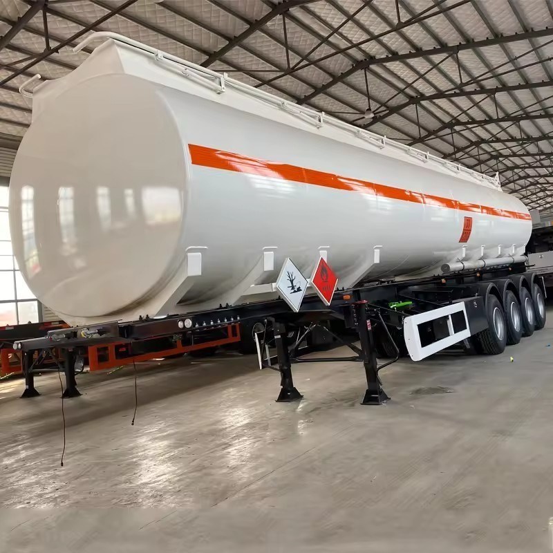 O corpo do tanque de um reboque de tanque de combustível pode ser feito de diferentes materiais, como alumínio, aço carbono e aço inoxidável.e a extremidade inferior da placa de defleção é projetada com buracos para reduzir o impacto do combustível no tanque e melhorar a resistência do tanque.